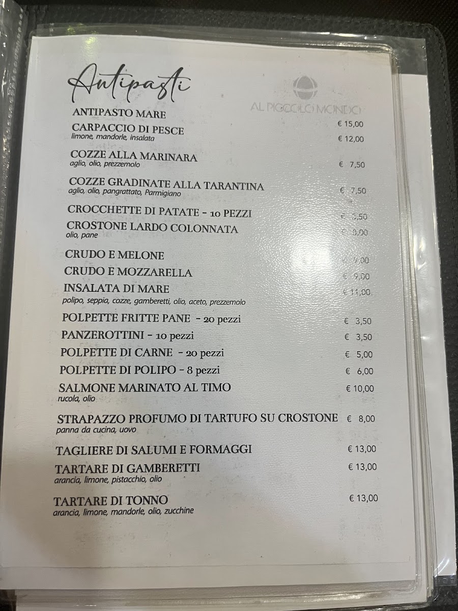 Al Piccolo Mondo Menu